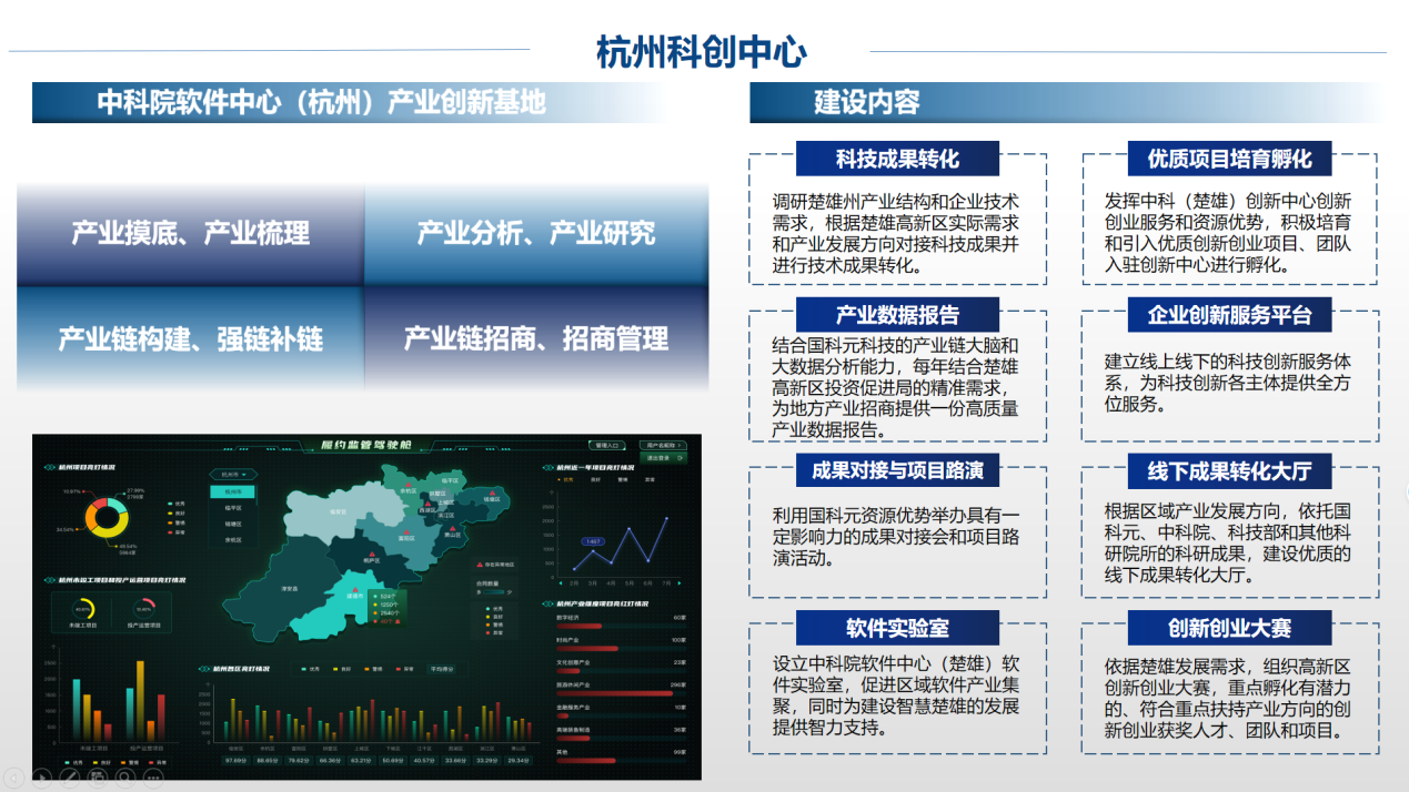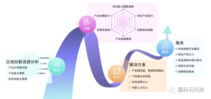 科创大脑是国科元科技(北京)有限公司(简称“国科元科技”)的核心业务体系,是国科元科技响应国家“创新驱动发展战略”,以区域市场科技创新生态发展需求为导向,以国科元科创大数据资源、人工智能技术以及总部科创大脑平台为基础,通过一系列具有自主知识产权的信息化平台,分析区域及全国,产业链上、中、下游各个节点的企业发展情况、知识产权、项目成果、专家人才,围绕建链、稳链、补链、强链、延链,建立“一体化、一盘棋、一张网”的区域科创大脑,激活区域的产业、载体、政策、成果、人才、资金、土地等科技创新元素数据资源,为地方政府、园区、金融机构和科技型企业等客户,提供“数据+平台+运营”的全方位的创新体系建设和创新能力提升服务。